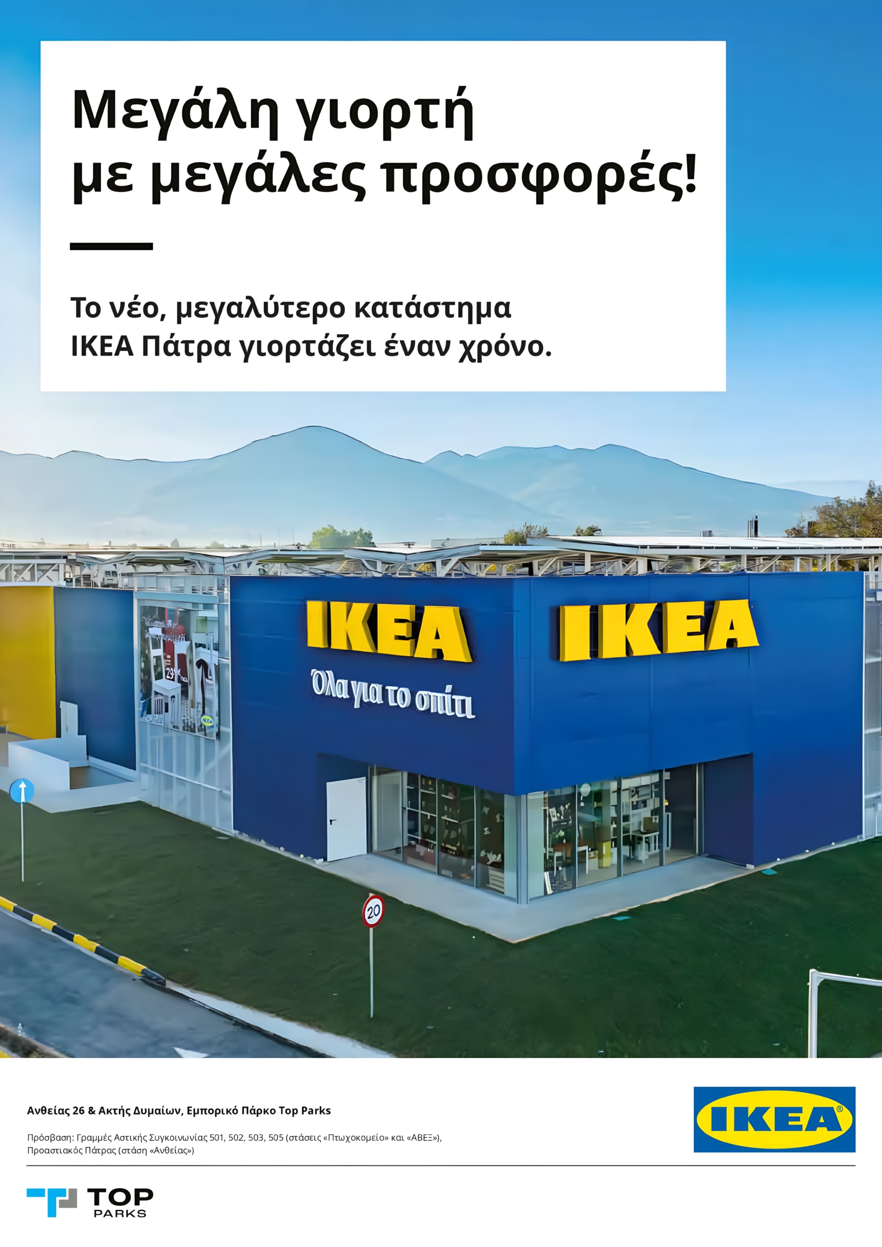 Η ΙΚΕΑ, εταιρεία του Ομίλου Fourlis, γιορτάζει τον πρώτο χρόνο λειτουργίας του νέου, μεγαλύτερου καταστήματος ΙΚΕΑ στην Πάτρα και προσκαλεί τους επισκέπτες να ανακαλύψουν μια σειρά από μοναδικές προσφορές που καλύπτουν κάθε ανάγκη για το σπίτι.