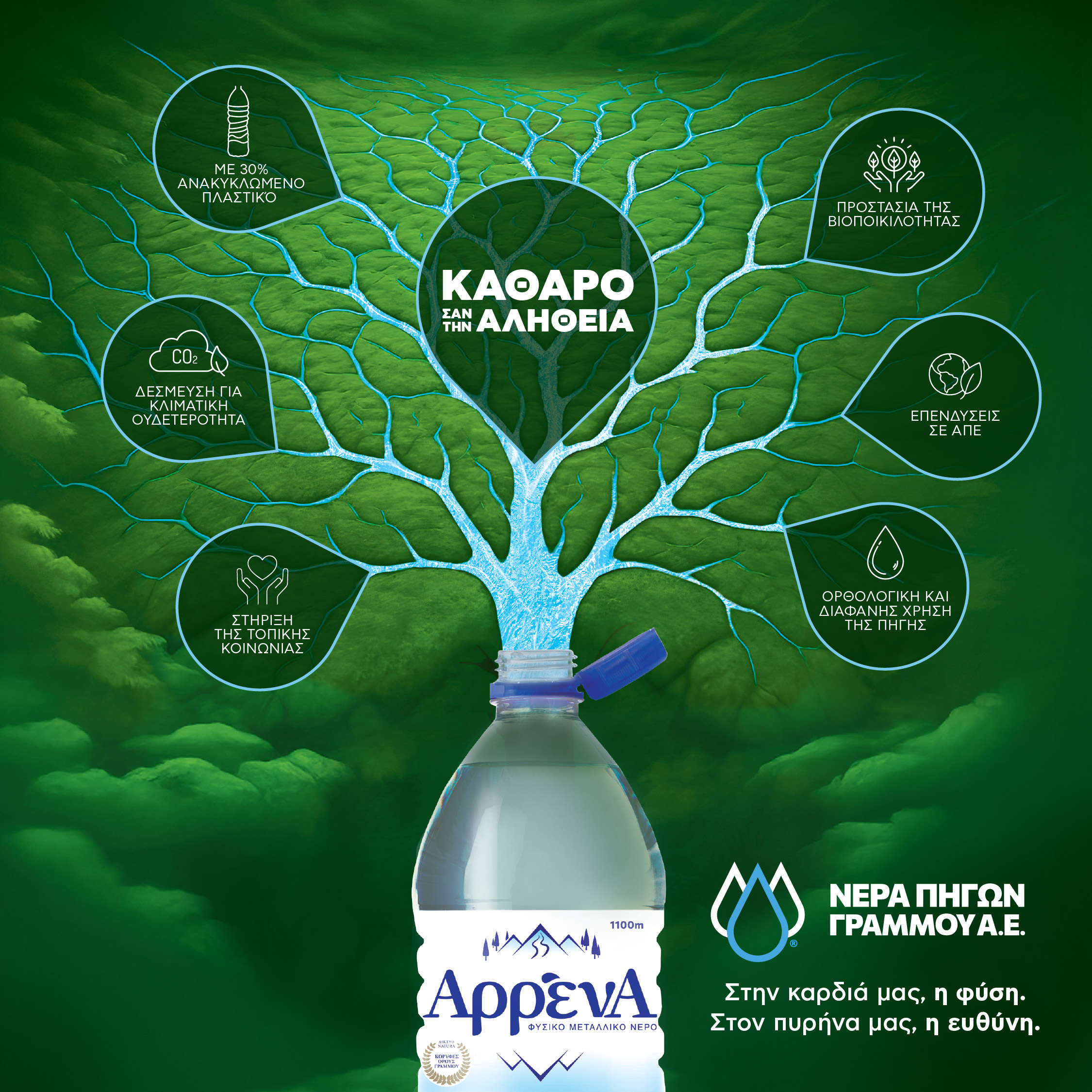 Κάθε φιάλη ΑρρένΑ αποτελεί την απόδειξη ότι μια σύγχρονη βιομηχανική μονάδα μπορεί να λειτουργεί στην καρδιά ενός οικοσυστήματος NATURA, όχι επιβαρύνοντάς το αλλά προστατεύοντάς το. Ότι η επιχειρηματικότητα μπορεί να στηρίζει τις τοπικές κοινωνίες. Ότι η ανάπτυξη μπορεί να συμβαδίζει με την αυθεντικότητα, τη διαφάνεια και τον σεβασμό.