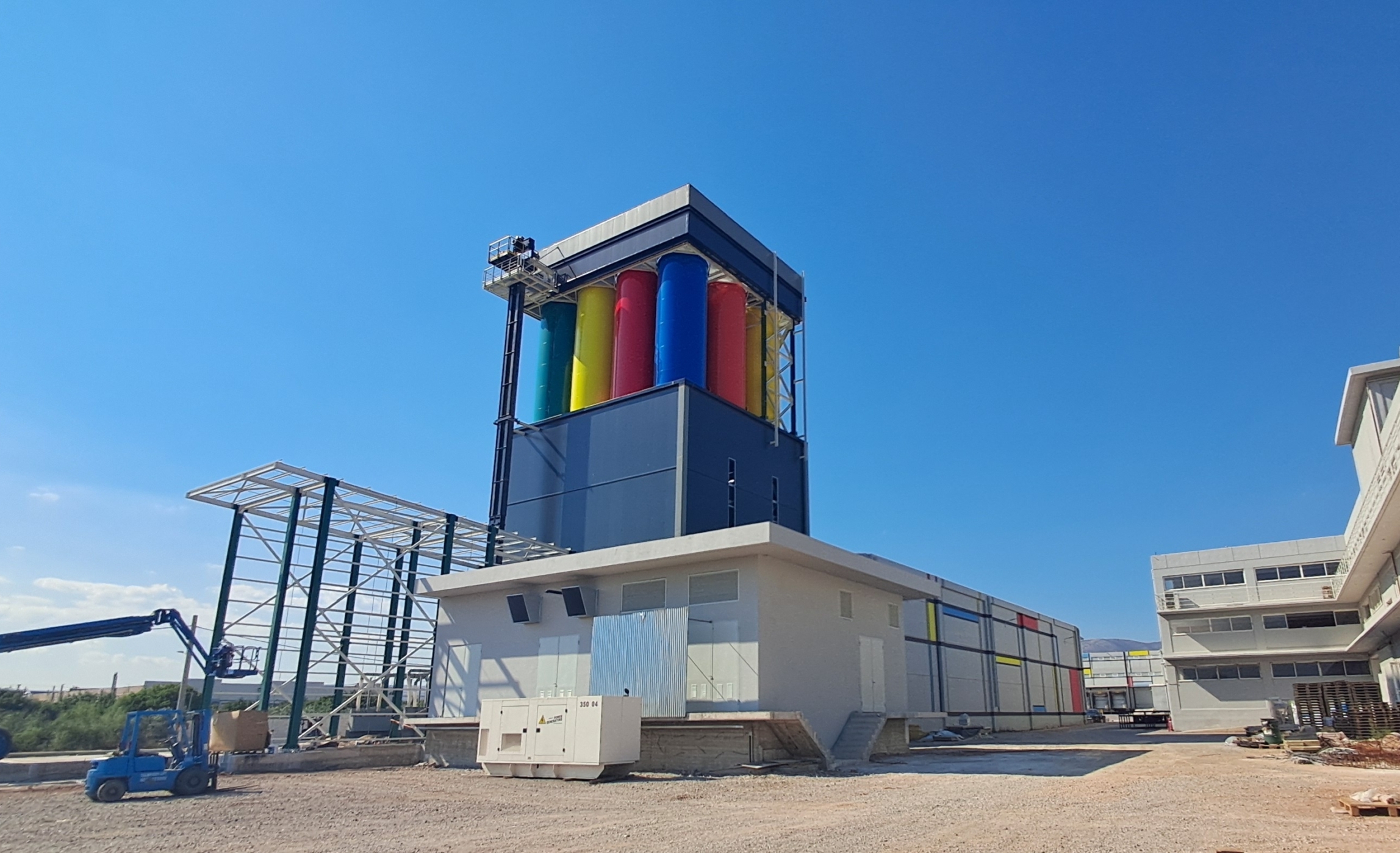 Στην είσοδο του νέου βιομηχανικού συγκροτήματος της Vitex, στην Αγία Παρασκευή Ασπροπύργου, ο Χρωμόπυργος, μία μοναδική μονάδα παραγωγής κονιαμάτων που συνδυάζει τεχνολογία και αρχιτεκτονικό design, ύψους 32 μέτρων και με 11 σιλό, λειτουργεί ως σύμβολο του μετασχηματισμού της εταιρείας.