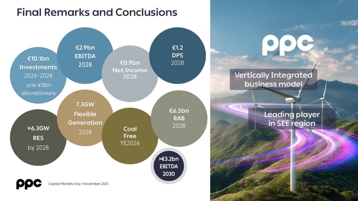 Με το νέο στρατηγικό σχέδιο, η ΔΕΗ εισέρχεται σε μια φάση ταχείας και υγιούς ανάπτυξης που ενισχύει τον ρόλο της ως εθνικού επενδυτή και περιφερειακού powertech ηγέτη, με καθοριστική συμβολή στη βιώσιμη μετάβαση της Ελλάδας και της Νοτιοανατολικής Ευρώπης.